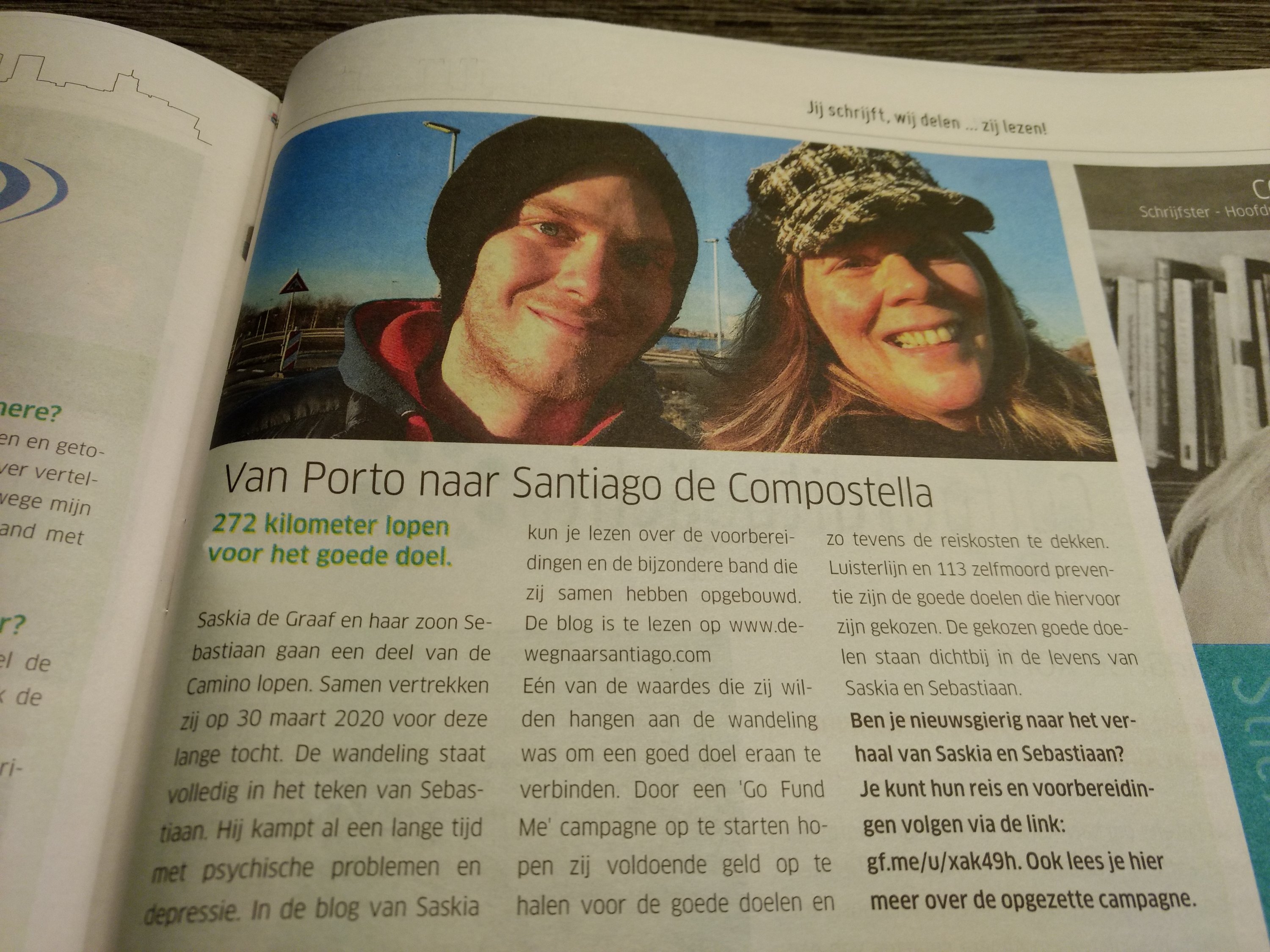 Maandag een leuk bericht: “Ons Almere” gaat een kort artikel plaatsen over onze wandeling naar Santiago en onze Gofundme campagne! Help je ons mee het doel van 5000 euro te halen? Doneren kan via http://www.gf.me/u/xak49h