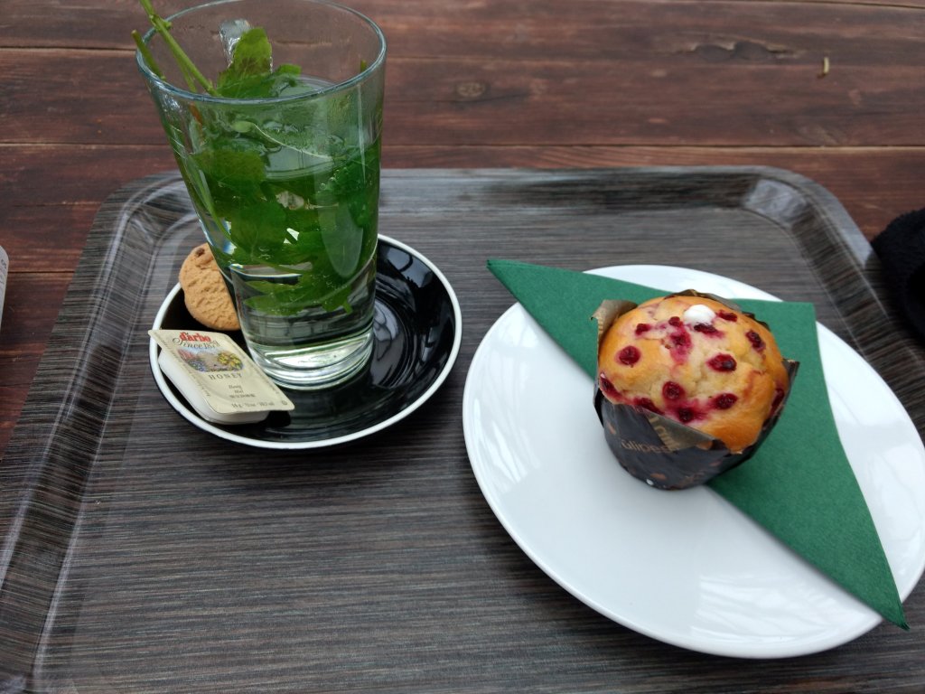 Streefgewicht gevierd met een yoghurt cranberry muffin en muntthee.